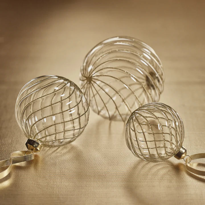 Swirl Glitter Ball Ornament - Clear and Gold - 4.75 in