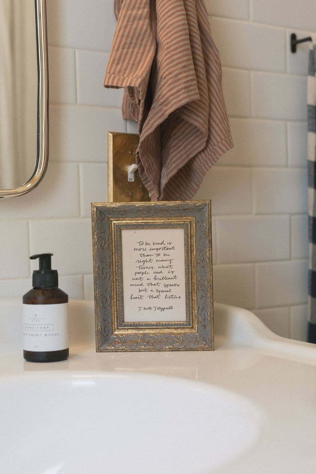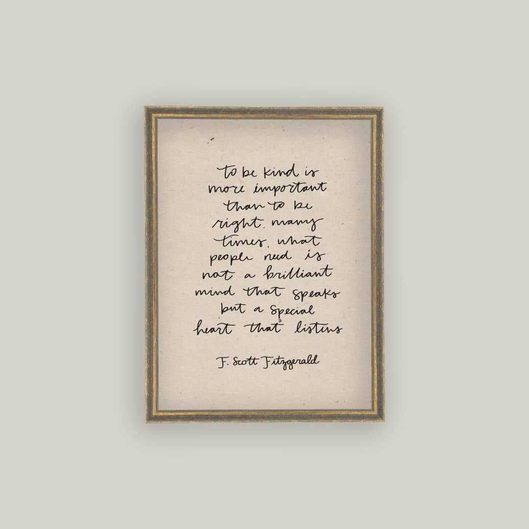 To Be Kind framed antique art is printed on quality canvas, giving it a lasting finish, then placed into our handcrafted Patina Gold frame.
