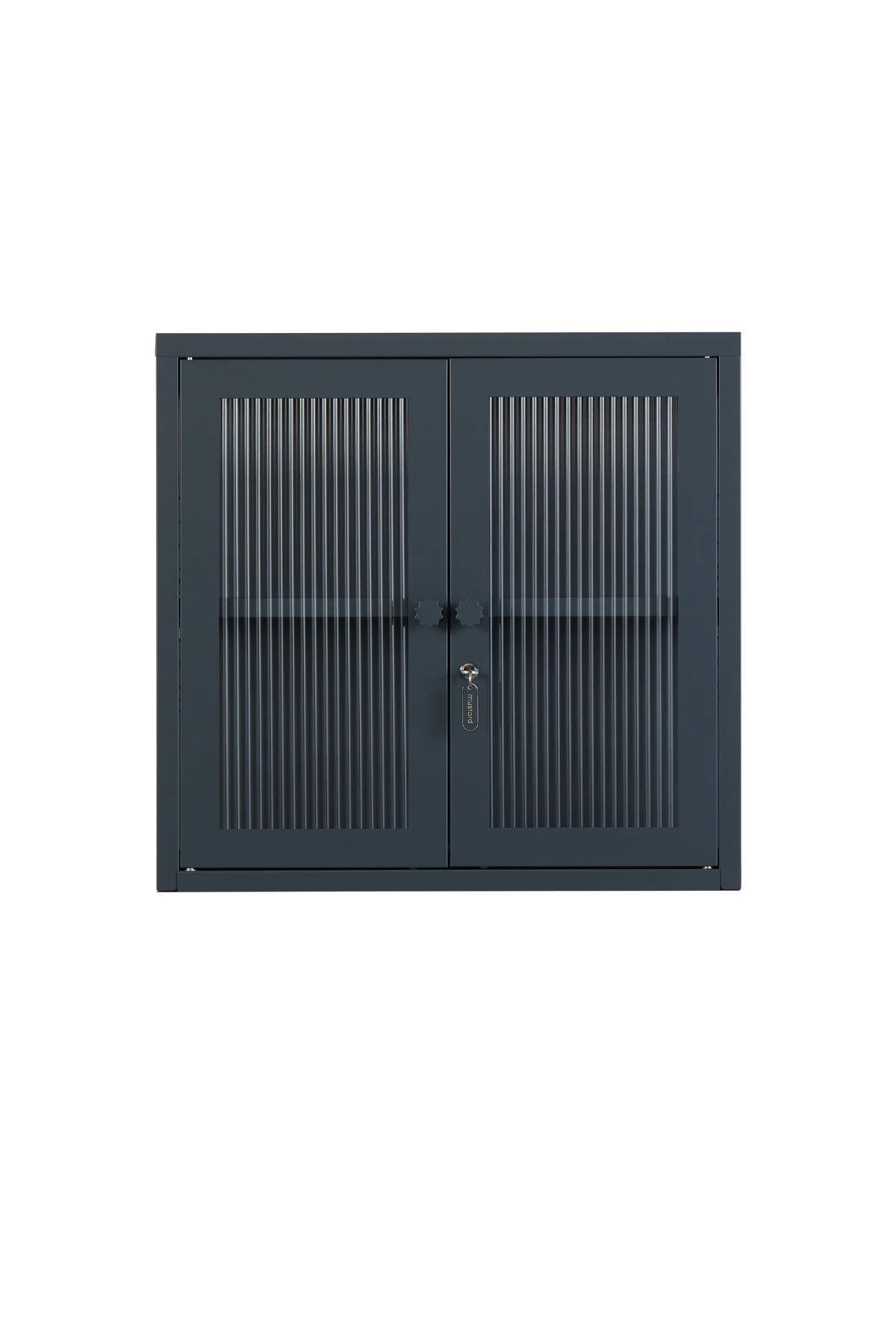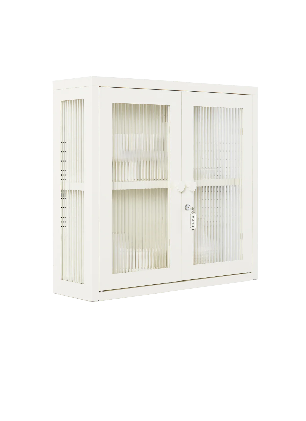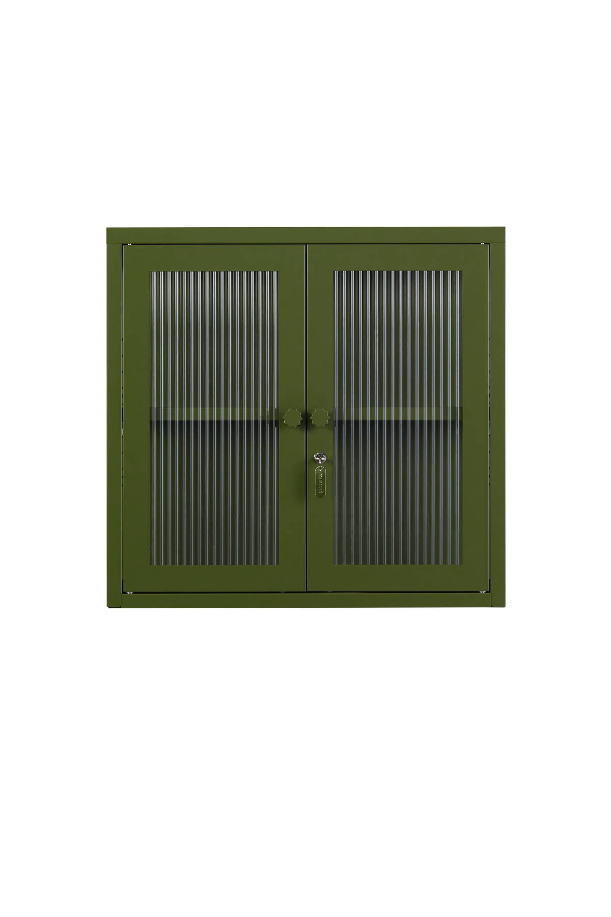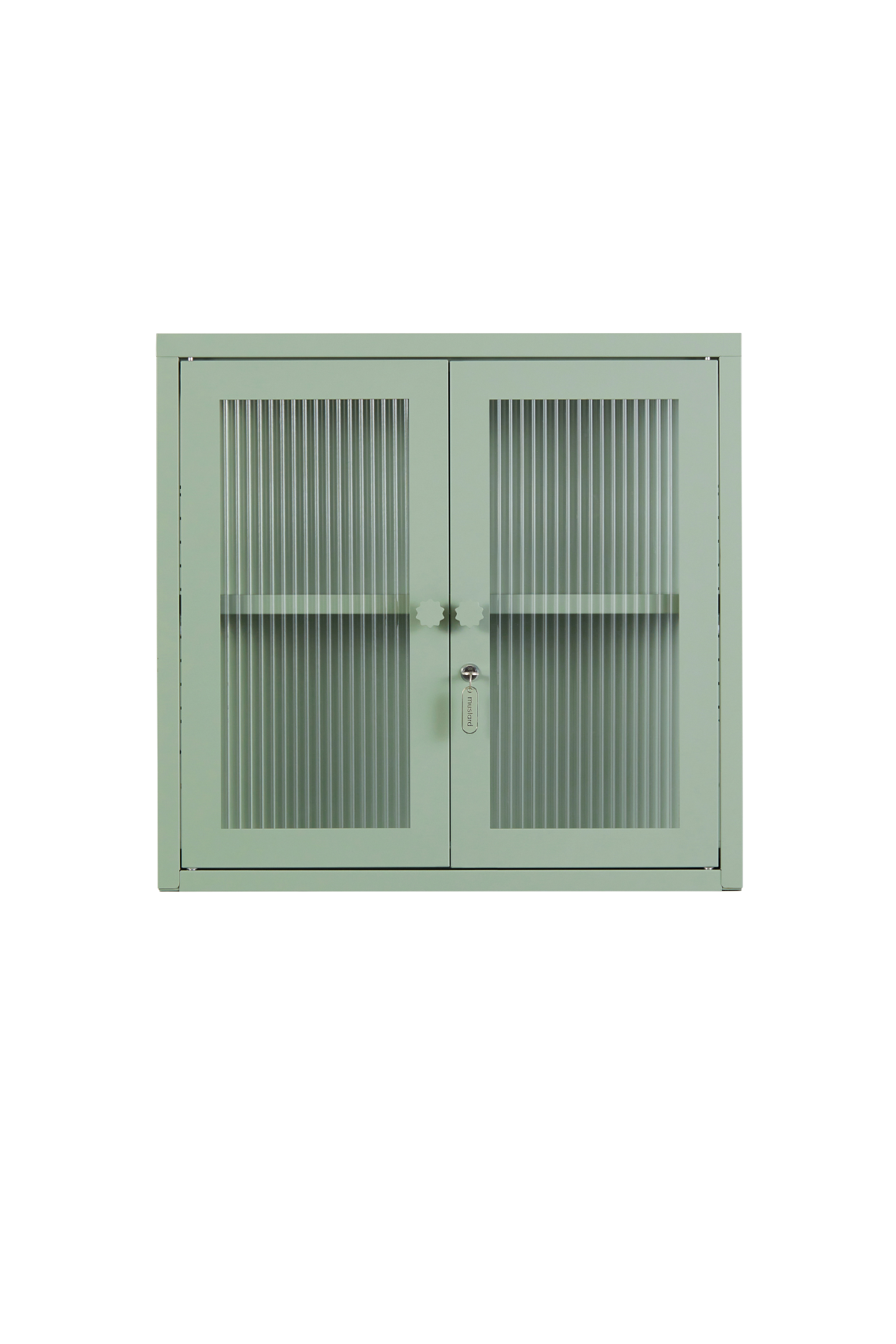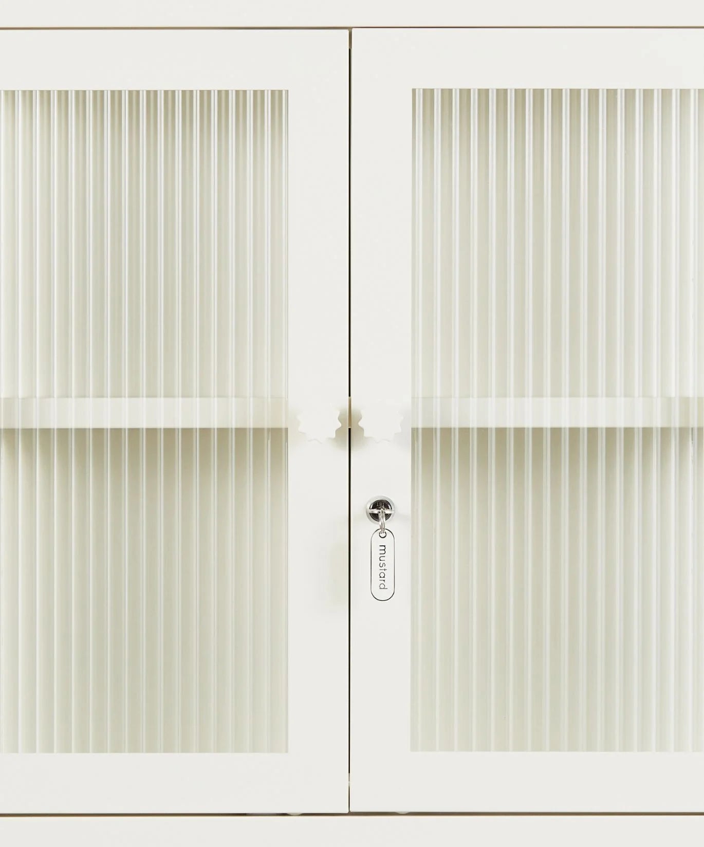 Petite and purposeful, The Kit is your vintage medicine cabinet reimagined! Wall-mounted and a little retro, she's ready to house everything from your keys to your serums to your teacup collection (cute!) With medallion handles and a custom enamel keyring, she's little and lovely and very, very useful. An adjustable shelf, lockable doors and fluted glass panels set in a metal frame. Medallion handles, a lock, a custom enamel keyring and Mustard logo.