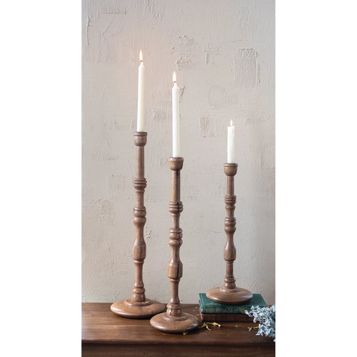 Turned Mango Wood Taper Holder, Natural