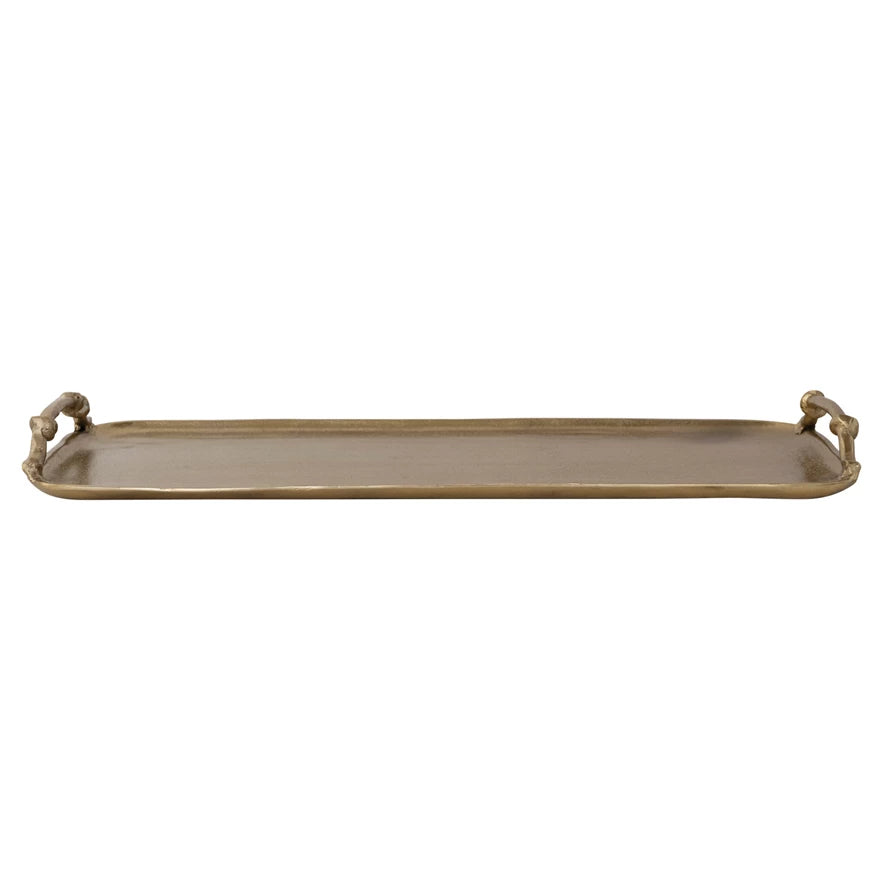 Cast Aluminum Tray with Handles, Gold Finish