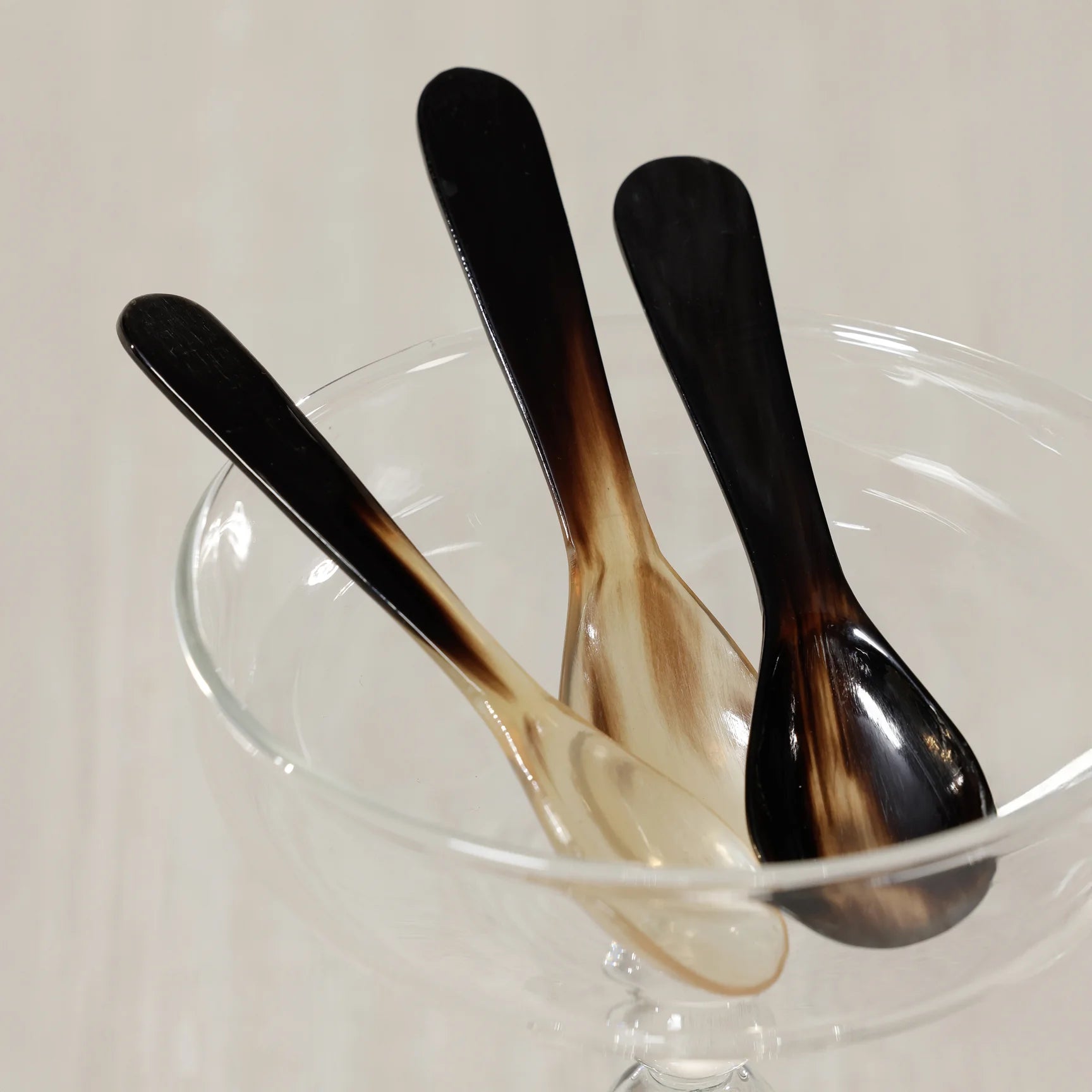 A refined detail for elevated entertaining, this natural horn spoon showcases organic variation in tone, from deep espresso to warm ivory. Smoothly finished and subtly sculptural, each piece is entirely unique. Crafted in natural horn, each one will vary. Sold individually.